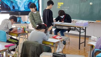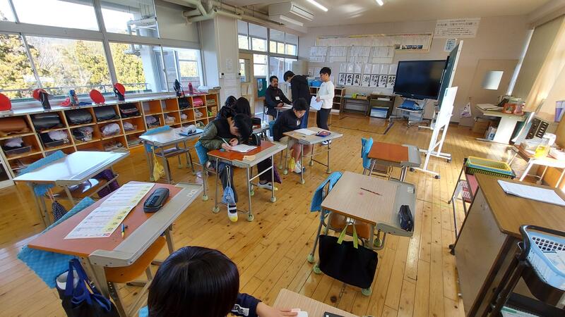 残念ながら地域の行事「どんど焼き」が、各地区で行われていたため欠席の方も数名いらっしゃいましたが、今日も4人の方に来ていただき各教室で丸付けをしていただきました。