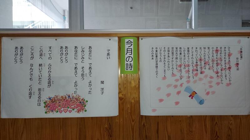 これまでは、全学年同じ詩でしたが、今月は、在校生と卒業生で変えてみました。