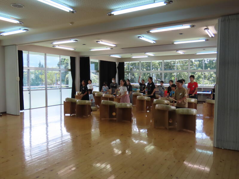25日の昼休みに、お礼の気持ちを込めて、子ども達が練習している太鼓の演奏をしました。使っている太鼓は練習用のタイヤ太鼓ですが、精一杯たたきました。そして、2年生は「歌を送りたい」と4人で和奈さんに向けて歌を歌いました。