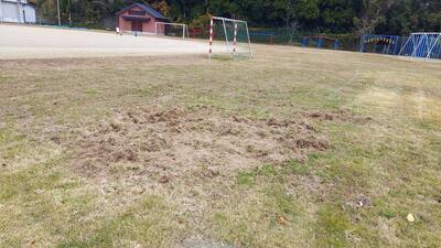 今日は、3時間目に持久走の練習で運動場を子どもたちが走るということだったので、その前に運動場の落ち葉掃きを兼ねて見回りました。