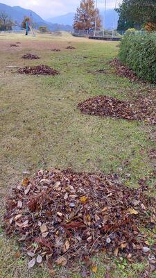 1か月以上前に芝刈り機で芝を刈りましたが、もうさすがに成長は遅く、しばらく芝刈りはしなくてもよさそうです。その代わりと言わんばかりの落ち葉です。