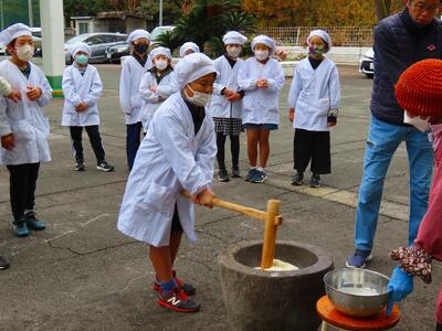1日(金) 「れいとくの日」 今年は、太鼓演奏に加えて本橋馨さんの絵本の読み聞かせや全校児童による餅つきを計画しました。地域の方や保護者の協力により、子どもたちは有意義な体験ができました。