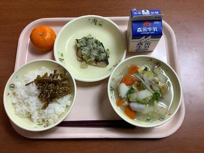 4日(月) 「本日の給食」 今日の献立は「美里の新米ご飯、牛乳、具だくさん味噌汁、焼きサバのおろしだれ、手作り佃煮、みかん」でした。町の米品評会で使用されたおいしい新米をいただき、早速給食で使わせていただきました。和風のメニューでいろいろな野菜や魚と一緒に食べると、さらに美里米のおいしさが増したような気がしました。