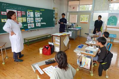 6日(水) 「食育授業」 中学校から栄養教諭の先生に来ていただいて、食育の授業を実施しました。初めての1年生も2年生と一緒に学び、その日の給食の献立をもとに材料を3種類に分類していきました。学びも多かったようです。