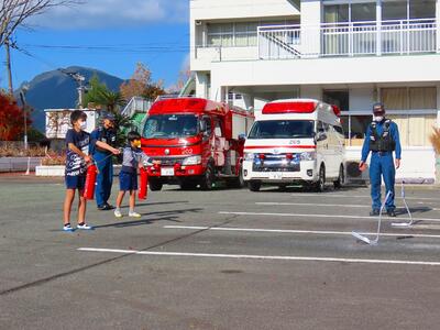 7日(木) 「地震火災避難訓練」 地震の影響により、家庭科室から火災が発生したという想定で避難訓練を行いました。消防署からも来ていただいて、避難の様子から戸締りの必要性をお話しいただきました。また、トイレに閉じ込められ、逃げ遅れた児童を助ける訓練も追加し、職員の学びにもなりました。写真は消火訓練の様子です。今回の反省を次に生かしたいと思います。