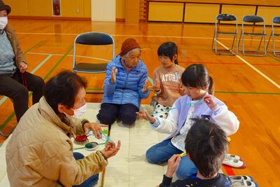 8日(金) 「昔遊び」 地域の方に来ていただいて、1・2年生と昔遊びをしながら交流しました。「ぎんなん」「あやとり」「お手玉」「けん玉」「コマ回し」と初めて経験する児童も多く、教えてもらいながら昔遊びを楽しむことができました。
