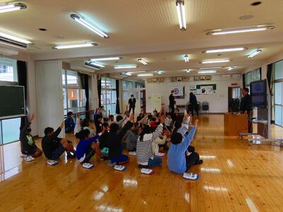 19日(火) 「地区児童会」 登校班ごとに分かれて、登下校の様子の振り返りと冬休みに気を付けること等を話し合いました。日頃の学習での話合い活動が生かされ、上級生を中心にしっかりと話合いができてました。