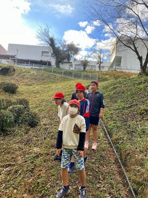 15日(金) 「アウトドアクラブ」 今日はクラブ活動があり、アウトドアクラブでは校舎周辺の探索を行いました。いろんな植物や動物を探したり、日頃見ない場所の探検をしたりしました。