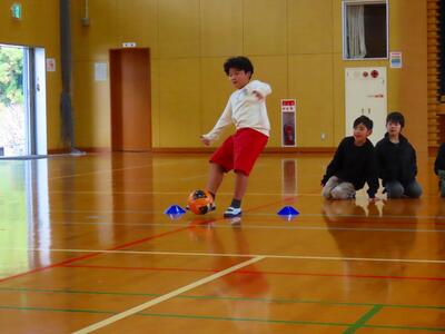20日(水) 「全校遊び」 昼休みに、企画委員会主催の全校遊びが行われました。今回は、「キックボウリング」です。自分の選んだボールでペットボトルのピンを倒します。ラグビーボールもあり、なかなか思い通りにならないことも多く、みんなで大変盛り上がりました。