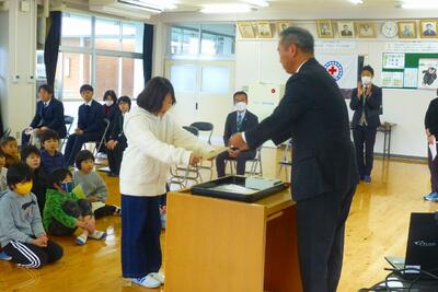 22日(金) 「表彰伝達」 終業式に先がけて、2学期後半分の表彰伝達を行いました。各種行事でも子どもたちの活躍が光りましたが、その他でも読書感想文・感想画、書道、絵画展、ヘアードネイションでも活躍が見られ、たくさんの表彰がありました。