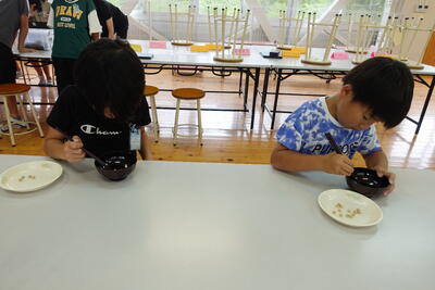 (これは、豆つかみに挑戦している2年生)