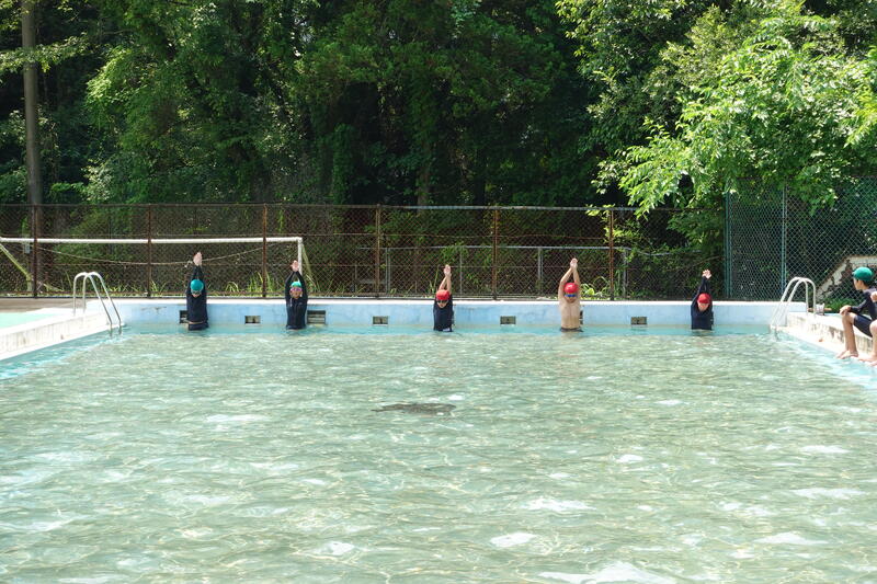 本校のプールは、20メートルプールのため一般的な学校のプールに比べると5メートル短いです。