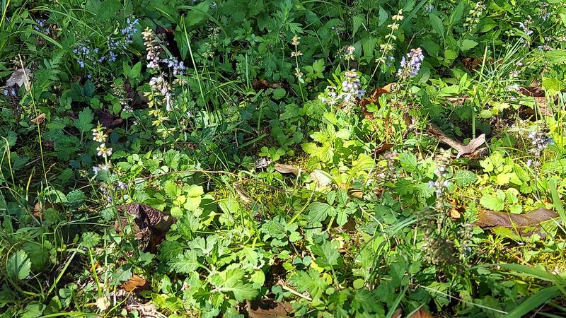 一番下の花は、運動場の木陰に咲いていました。Googleレンズによると「アキノタムラソウ(秋の田村草)」という花のようです。