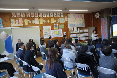 先月26日、小国郷人権教育授業研究会が3会場で行われ、そのうち一つが本校で行われました。本校では、5・6年生が公開授業を行いました。授業では、前半に親子合同劇「青い目の人形」を上演しました。