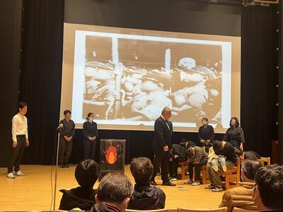 この中では、南小国町の小中学校の児童・生徒による発表、小国高校生の意見発表などが行われます。本校からは、5・6年生と保護者による「戦後80年特別企画 平和祈念親子合同劇『青い目の人形』」を上演しました。