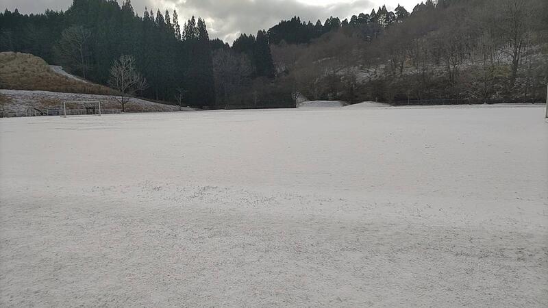 2日からの寒波で、3日の朝も運動場は一面の銀世界です。寒いけど、キレイです!
