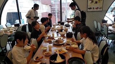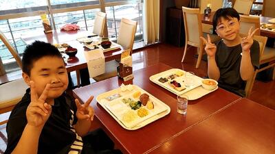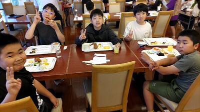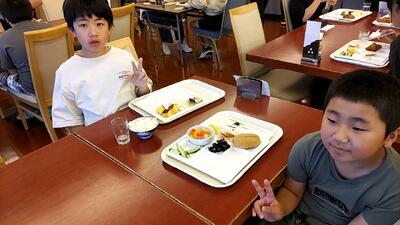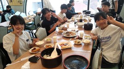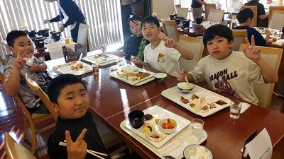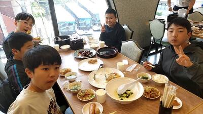 修学旅行2日目。今朝も元気なな活動します。楽しみの朝食は…