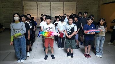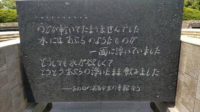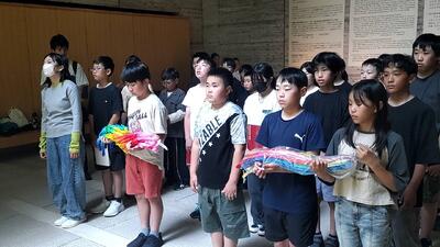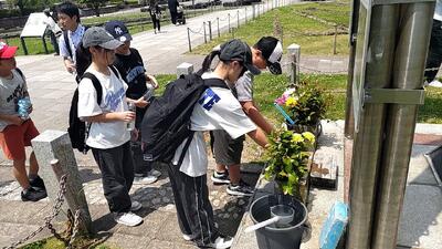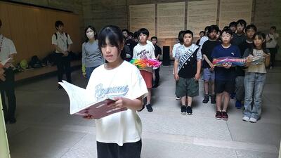 フィールドワークの後、原爆資料館見学をし、平和祈念集会を行いました。