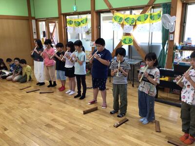 4月には2年生が出前コンサートを行いましたが、5月は3・4年生が黒川保育園に出かけて、コンサート&紙芝居をしました。