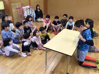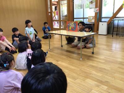 3年生は紙芝居をしました。園児がよろこんでくれそうなお話を選び、休み時間などを使って練習しました。