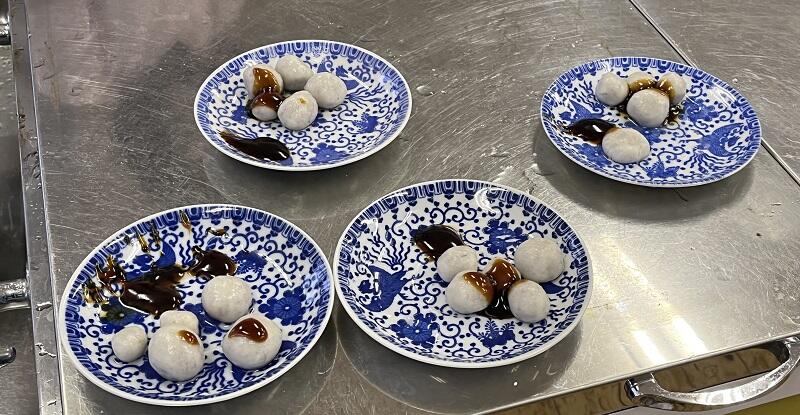 真ん中のテーブルで、即席折り鶴教室が始まりました…。