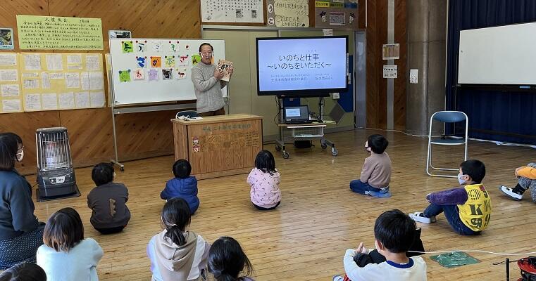 「羊は、毛が布団や服などになるし、お肉にもなるんだよ」