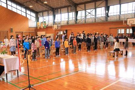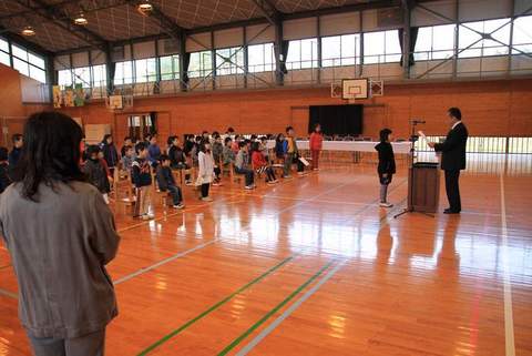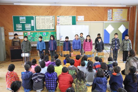 15日(金)の朝、全校児童の前で、壮行会を兼ねた発表会がありました。大勢の前での発表は緊張したようですね。でも、これで本番は大丈夫でしょう。