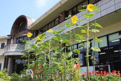 3年生が理科で育てているひまわりが花を咲かせました。