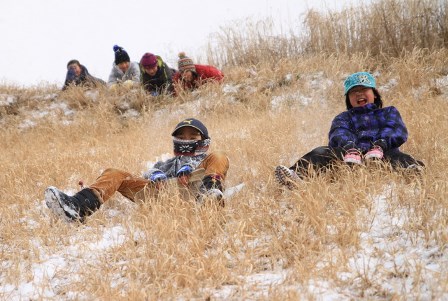 今回は、隣の斜面でそり滑りして盛り上がっていました。