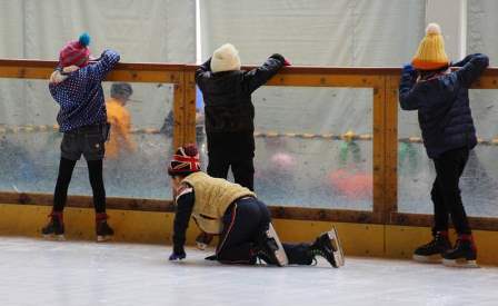 半分の子は、スケートが初めてでした。