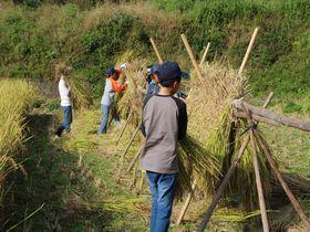 5年生が北里さんの田んぼで「稲刈り」体験を行いました。