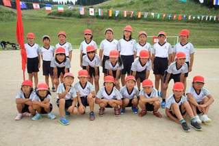 写真は、4年生チームの始まる前の整列と円陣の様子です。