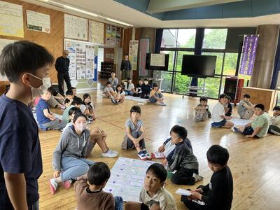 今日はのびのび学級の児童が阿蘇市立阿蘇体育館に行って、なかよし交流会に参加しました。他の学校の友達と楽しく交流することができました!