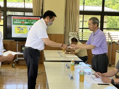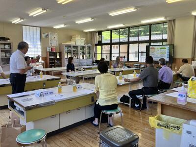 教育委員会からの委嘱状交付、学校運営協議会や地域学校協働本部の説明、授業参観後、協議をし、今年度の学校教育目標や地域学校協働本部の体制についての承認をいただきました。