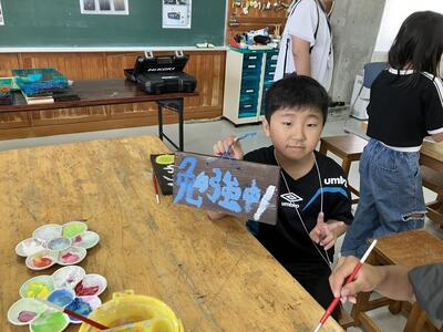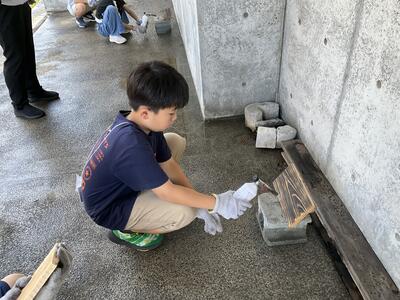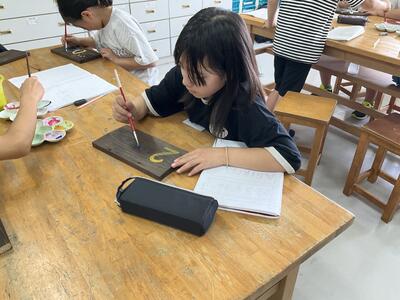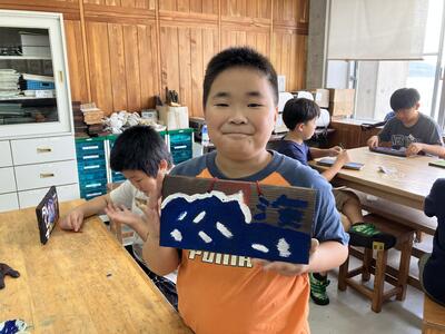 子どもたちに木のよさや森林を使い、守り育てていくことの大切さに気づいてもらうことを目的として、今年度より木育の授業を行っています。先日は2・3年生がモルックを作りましたが、今回は1年生が木を使ったオブジェを作りました!