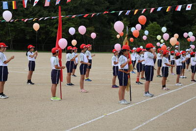 今年は、子供たちの夢のつまった風船を手に、町内4小中学校でつくった「きよらっ子の歌」で入場行進しました。そして、開会と同時に風船を空に飛ばしました!