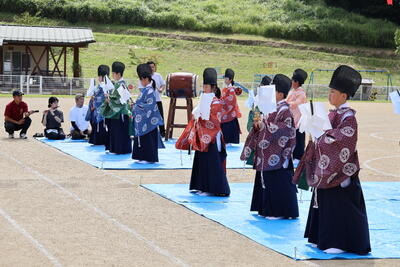 次は、1年生(2名)と2年生(1名)が神楽を舞いました。