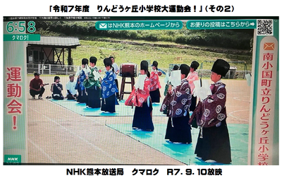 10日(水)のNHK「クマロク」(18:10~19:00)のお便りコーナーで、りんどうヶ丘小学校の運動会の様子が紹介されました。