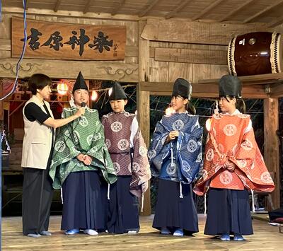 9月20日、吉原秋季例大祭で本校児童6年生、2年生、1年生(有志)が神楽を舞いました。
