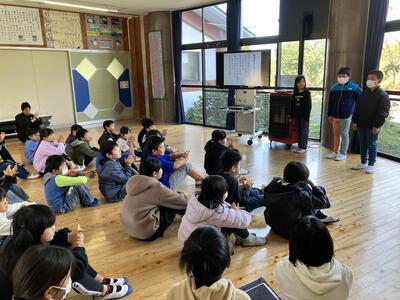 12月22日(金)の昼休みに、クリスマスコンサートが開催されました!5・6年生の演奏を1年生から4年生までの子供が聴きました!