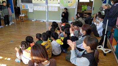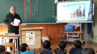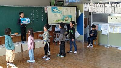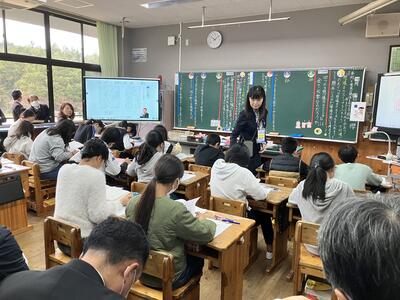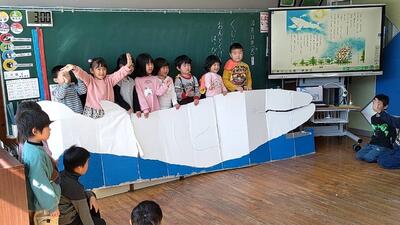 10月4日(水)阿蘇教育事務所から御秡如指導主事と早瀬指導主事、南小国町教育委員会から古庄指導主事をお招きして、1年生の研究授業を行いました。1年生の児童は「くじらぐも」の世界にどっぷりとつかりながら、学習していました。