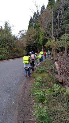 全児童48人で達成したことを一斉下校で喜びました。 バンザーイ!