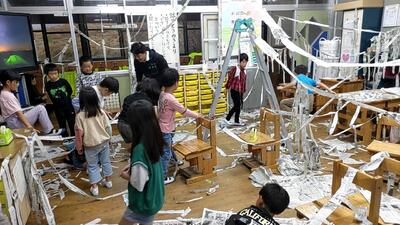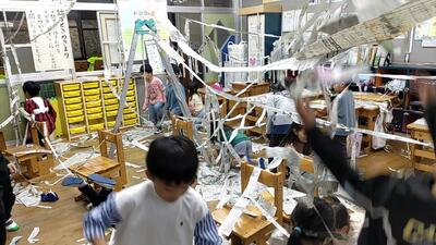 南小国町の取組の一つとして行われているドローン体験がりんどうヶ丘小学校でありました。低・中・高学年ごとに実施し、障害物のあるコースを操作したり、ドローンサッカーをしたりしました。講師の方曰く、小学校でドローン体験をしている学校は少ないとのこと。貴重な体験ができました!