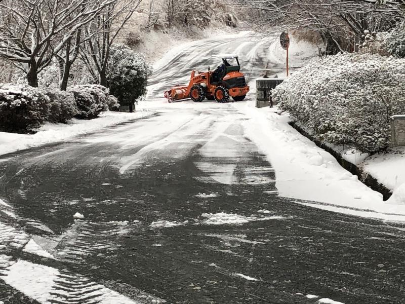 また、朝早くからは、近くの建設業者さんが重機を使って学校の駐車場から通学路の雪除けをしてくださいました。
