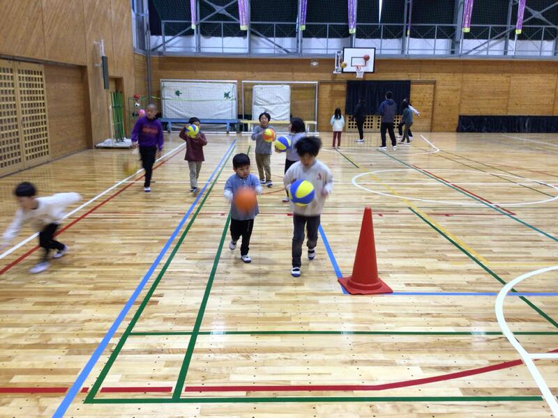 【金曜日のランランタイムの様子】 ドリブルしながら、ランニングをしていきます。