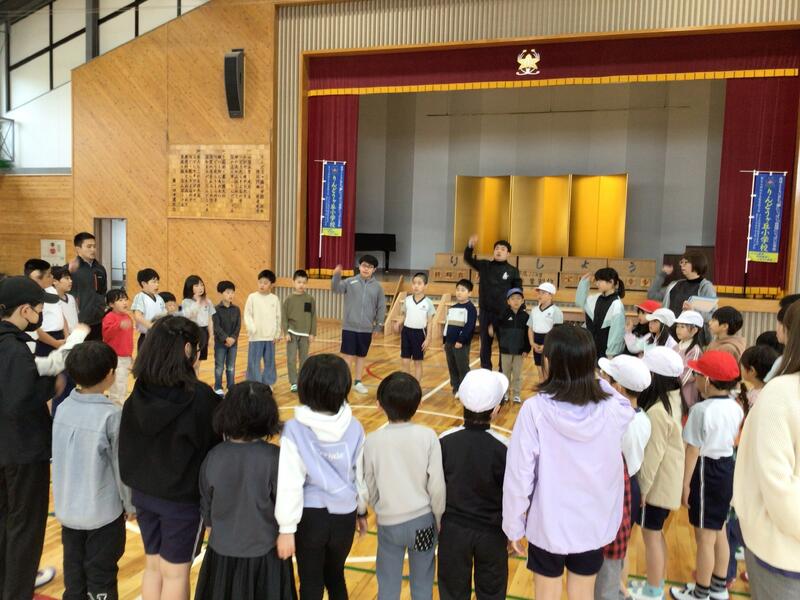 運動後には、全校児童で輪になります。6年生のかけ声により、1日の始まりをみんなで盛り上げていきます☆