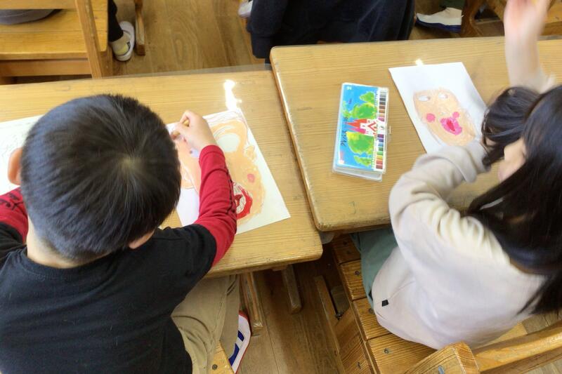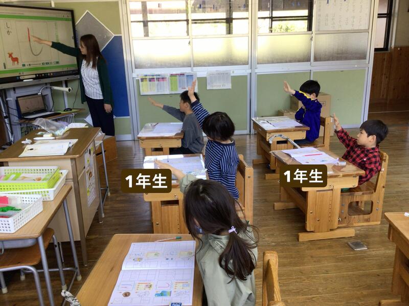 さて、授業の様子も少しだけご紹介します。1年生です。ひらがなの学習です☆