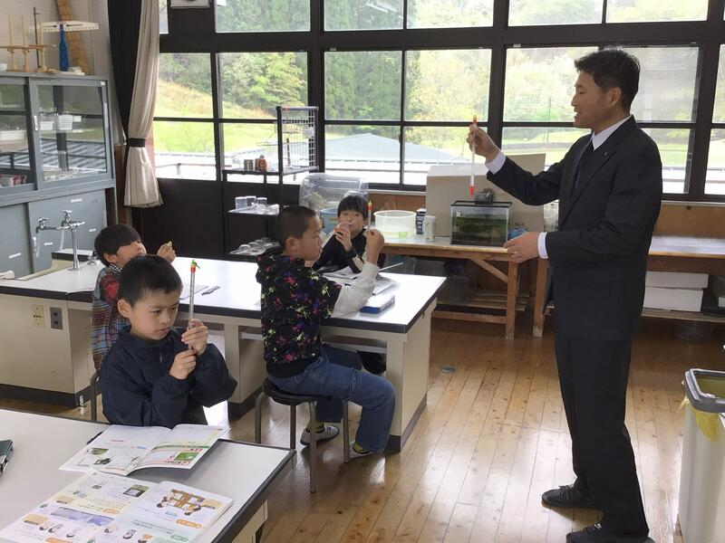 さて、本日の授業等の様子です。4年生の理科の授業です☆(教頭先生が指導しています)