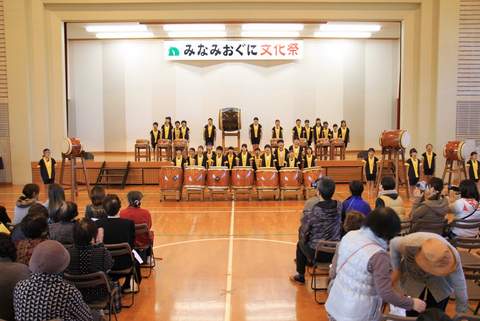 りんどう太鼓の発表 投稿日時 : 2016/11/09 学校サイト管理者 3日(木)に町の文化祭がありました。そこで、トップバッターとしてりんどう太鼓の発表をしました。立派な演奏を終えて,最後の挨拶をするときの写真です。 Tweet {{options.likeCount}} {{options.likeCount}} 0 コメント