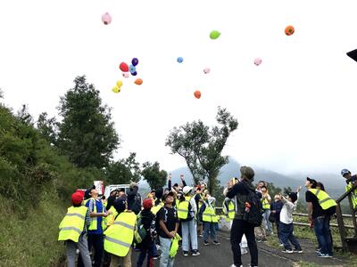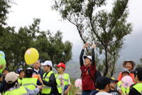 展望所に着いたところで、子供たち一人ひとりが自分の夢を書いた「夢カード」を風船に貼り付けて空に飛ばしました!